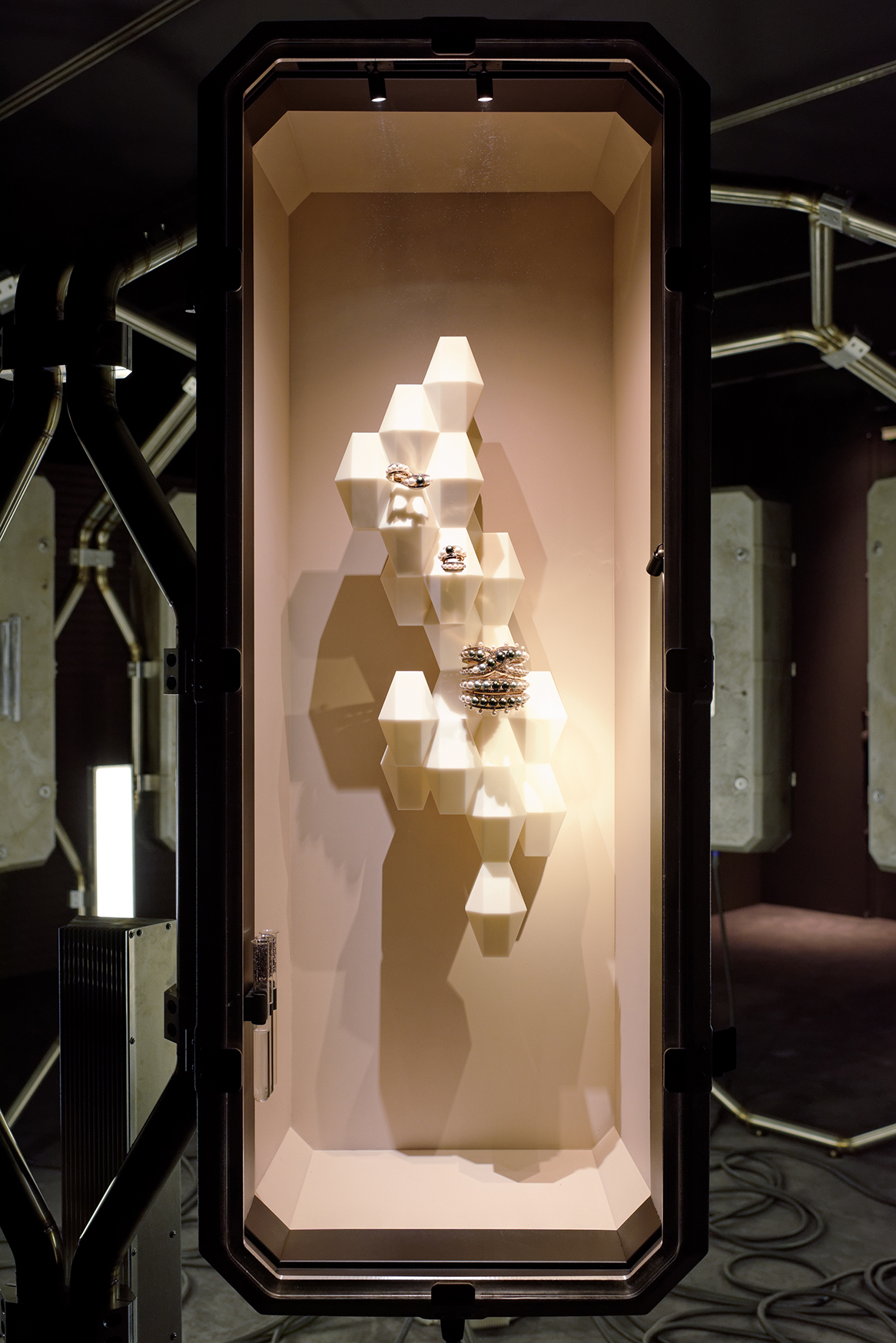 Mobile installation for Hermès High Jewelry collection “HB IV - Continuum” designed by Pierre Hardy.